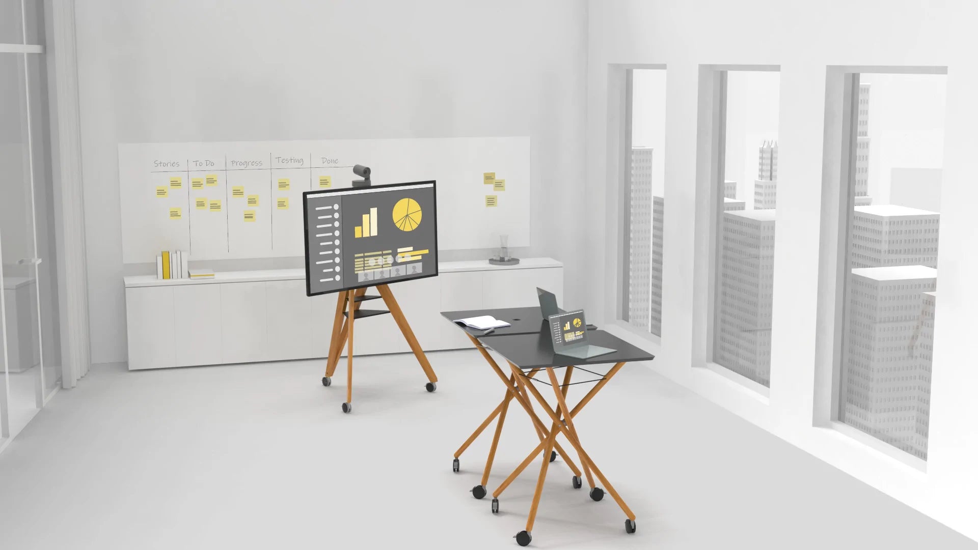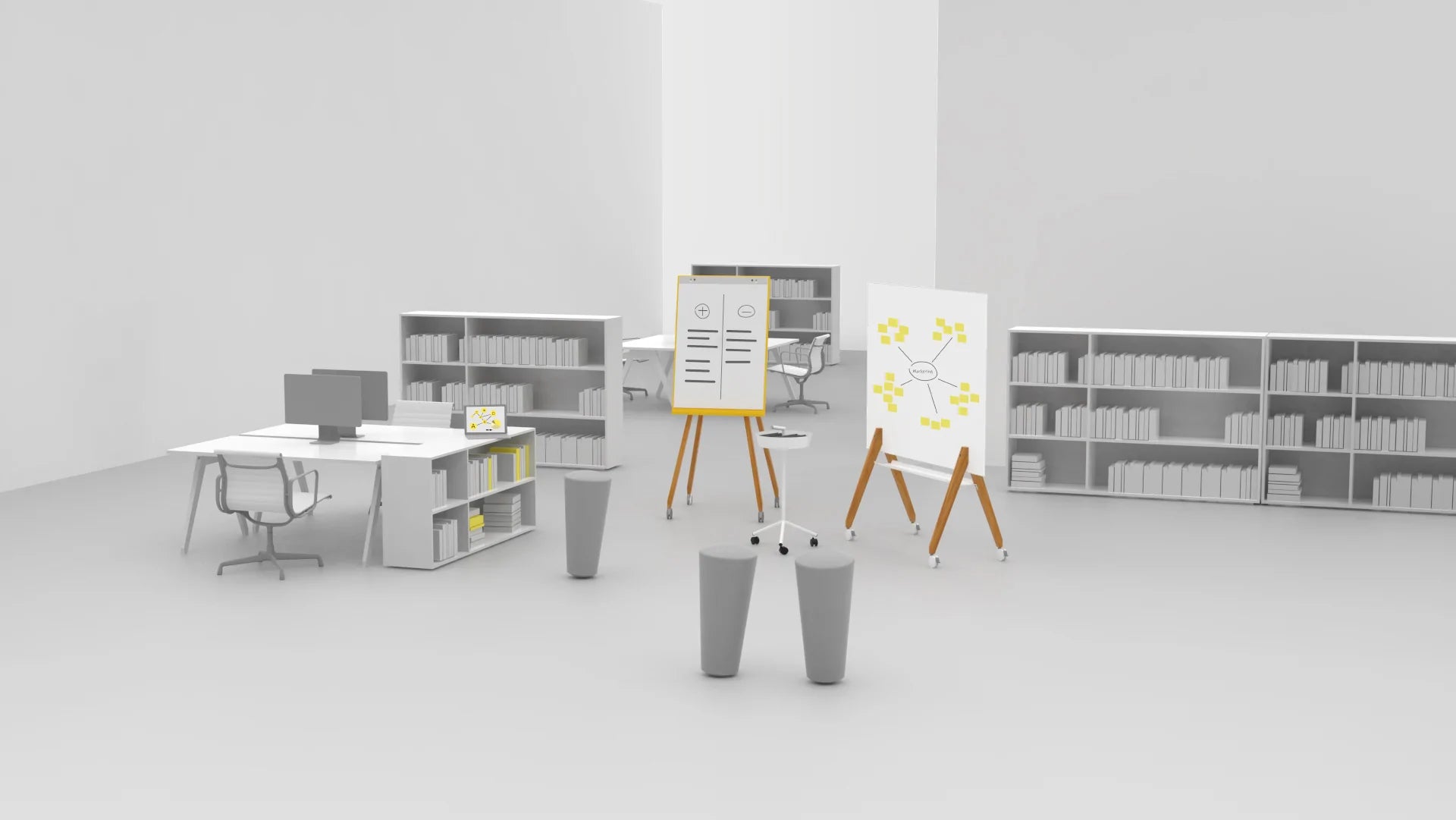 Les réunions ou les discussions entre équipes surgissent souvent spontanément sur le moment et posent aux employés le problème qu'il n'y a pas de salle de réunion libre disponible. Nos outils flexibles sur roues peuvent vous aider ici - simplement roulés dans le bureau de l'équipe, ils sont immédiatement disponibles et ne causent pas de frustration dans l'équipe.