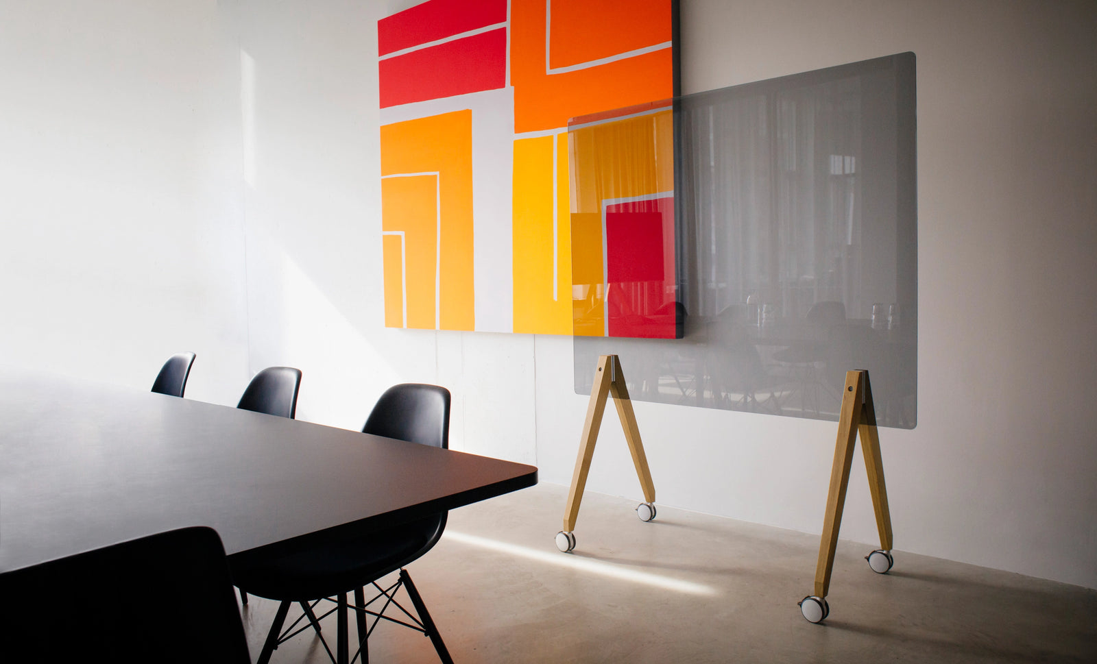 Glassworks reste en arrière-plan et conserve toujours la perspective. Le tableau de verre peut être écrit des deux côtés et est un outil merveilleusement mobile et en même temps très stable. Idées, croquis, graphiques - le glassboard Glassworks offre suffisamment d'espace pour les processus créatifs.